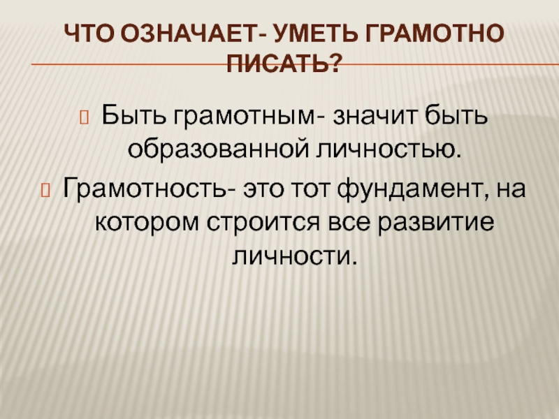 Слайд 3Что означает- уметь грамотно писать?