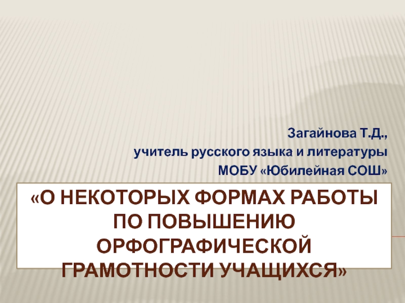 Слайд 1«О некоторых формах работы по повышению орфографической грамотности учащихся»