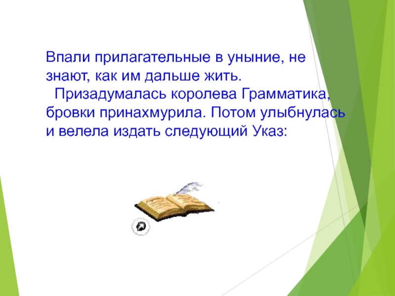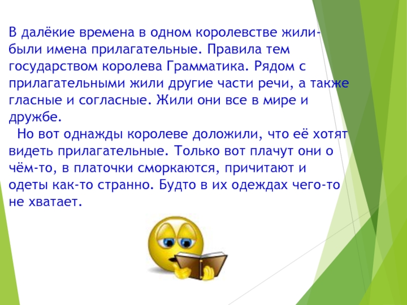 Слайд 6В далёкие времена в одном королевстве жили-были имена прилагательные. Правила тем