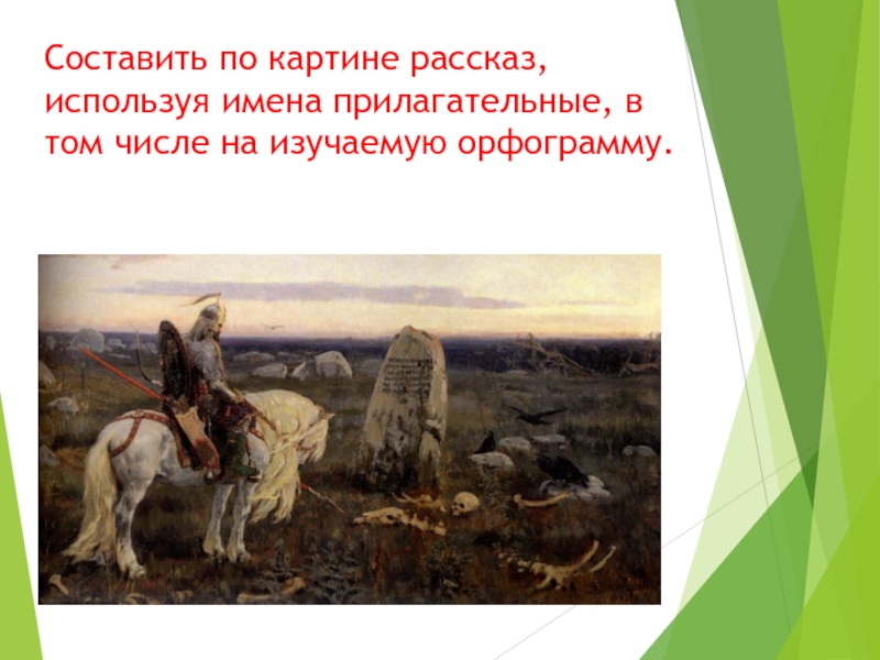 Слайд 15Составить по картине рассказ, используя имена прилагательные, в том числе на