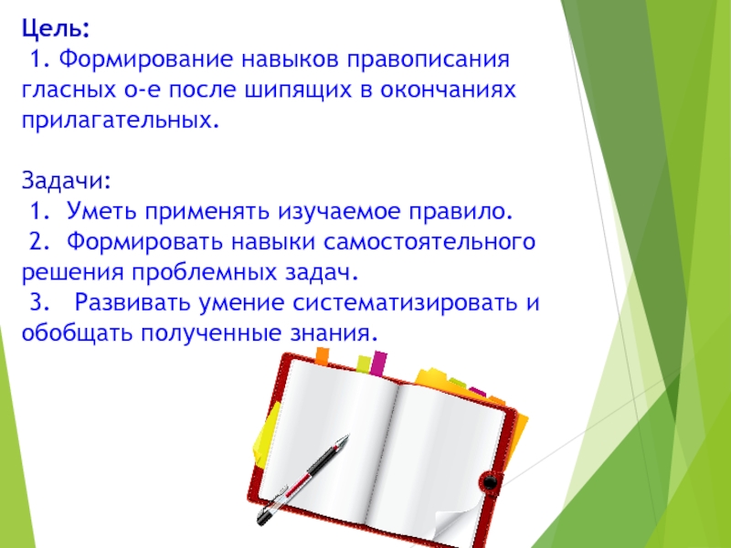 Слайд 11«В окончаниях имён прилагательных после шипящих под ударением пусть пишется буква