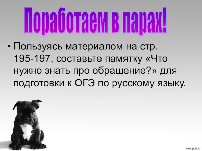 Это сайт презентаций, где можно хранить и обмениваться своими презентациями, докладами, проектами, шаблонами в формате PowerPoint с другими пользователями. Мы помогаем школьникам, студентам, учителям, преподавателям хранить и обмениваться учебными материалами.