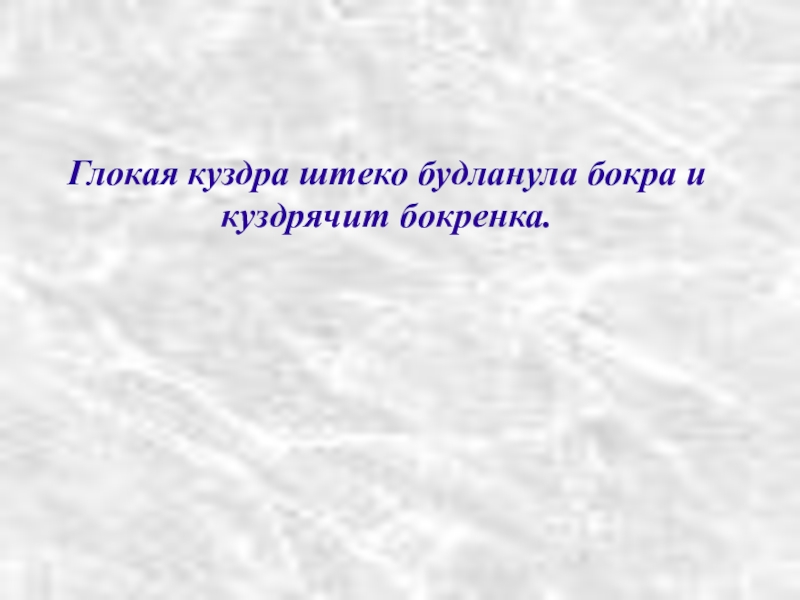 Слайд 5Глокая куздра штеко будланула бокра и куздрячит бокренка.