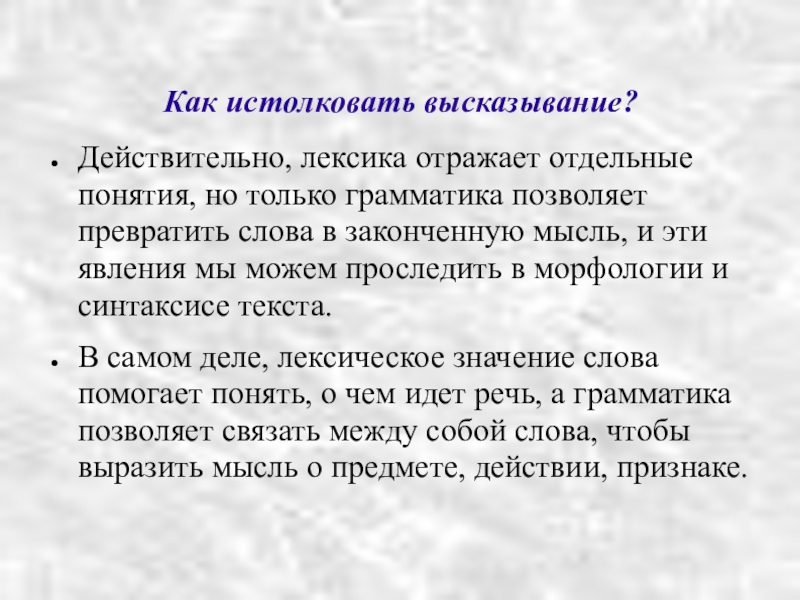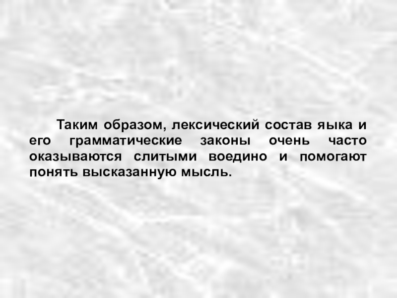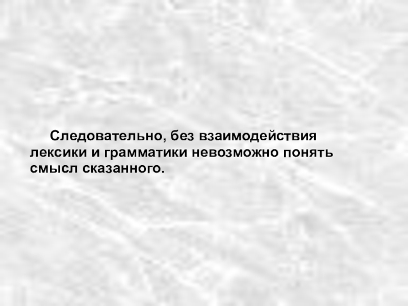 Слайд 21 Следовательно, без взаимодействия лексики и грамматики невозможно понять