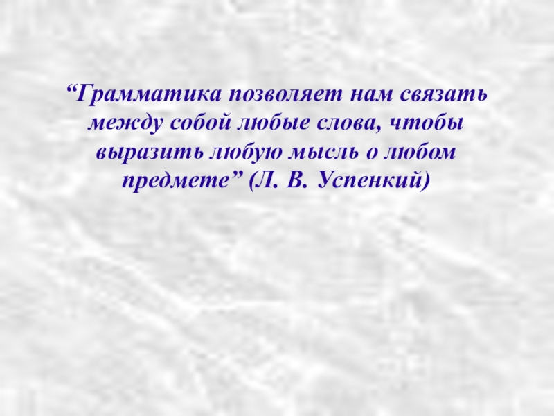 Слайд 4“Грамматика позволяет нам связать между собой любые слова, чтобы выразить любую