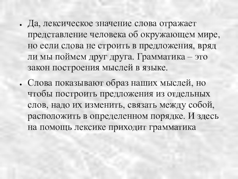 Действительно, лексика отражает отдельные понятия, но только грамматика позволяет