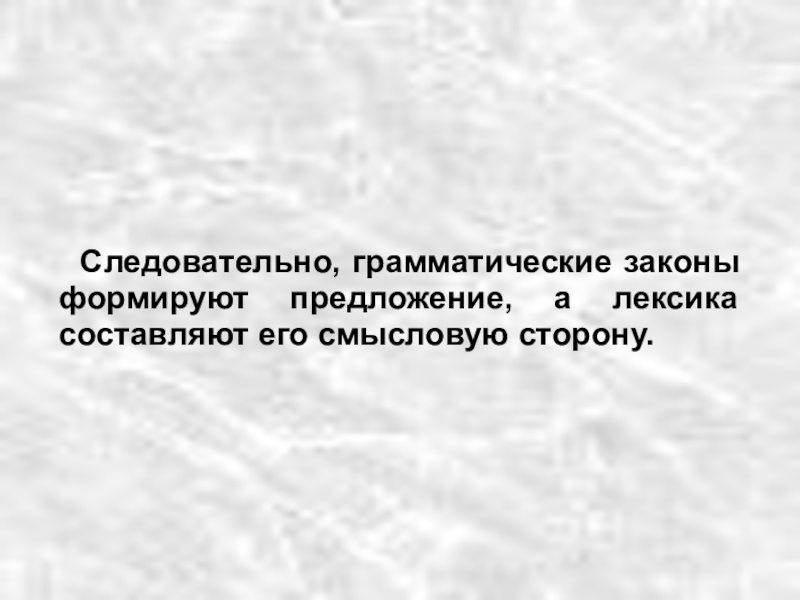 Слайд 16 Следовательно, грамматические законы формируют предложение, а лексика составляют его смысловую