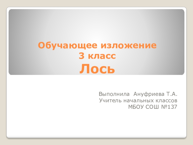 Обучающее изложение  3 класс  ЛосьВыполнила Ануфриева Т.А.Учитель начальных классовМБОУ СОШ №137