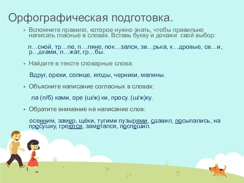л…сной, тр…пе, п…ляне, пок…зался, зв…рька, к…дровые, св…и, р…дками, л…жат, гр…бы.