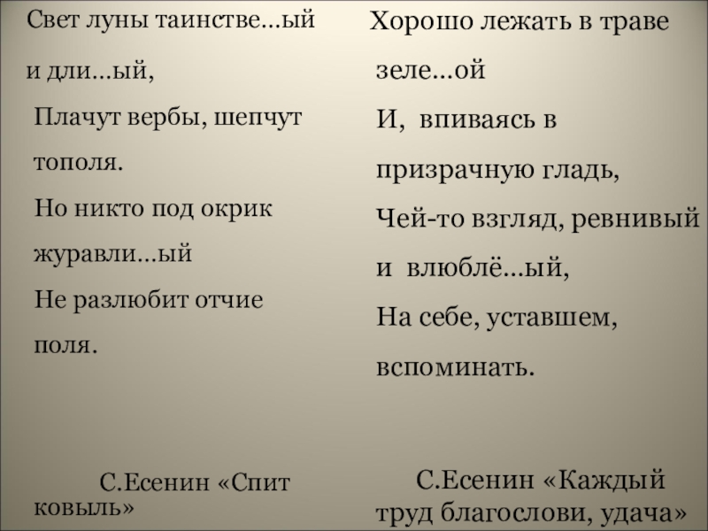 Хорошо лежать в траве зеле…ой И, впиваясь в призрачную гладь, Чей-то взгляд, ревнивый и влюблё…ый, На себе, уставшем, вспоминать.