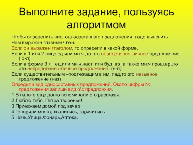 Односоставные предложения с одним главным членом-сказуемым