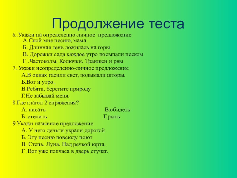 Слайд 19Продолжение теста