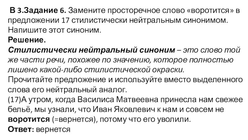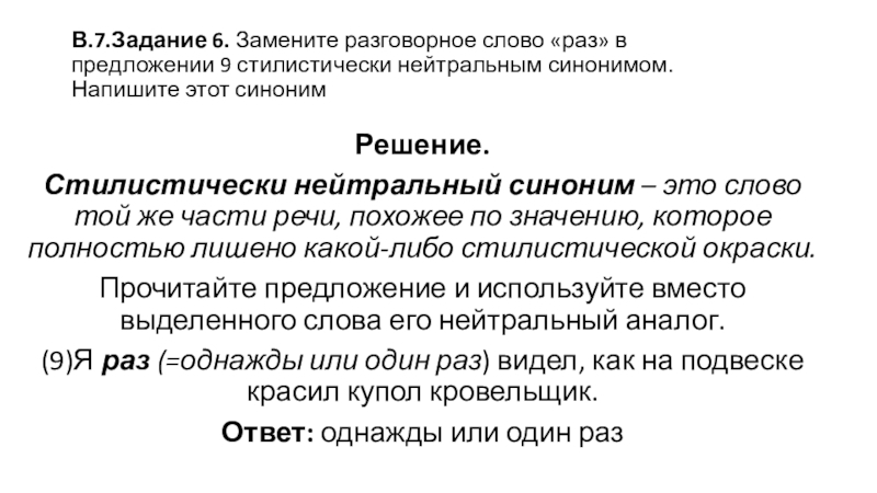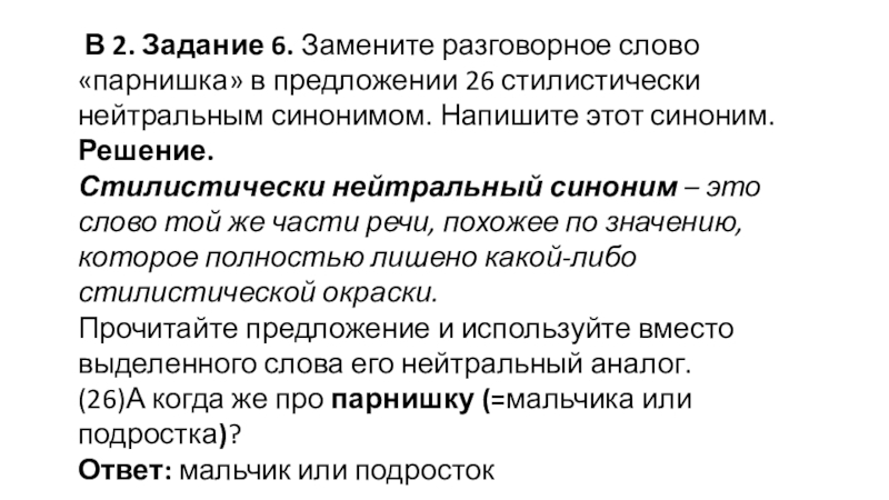 Прочитайте предложение и используйте вместо выделенного слова его нейтральный аналог.