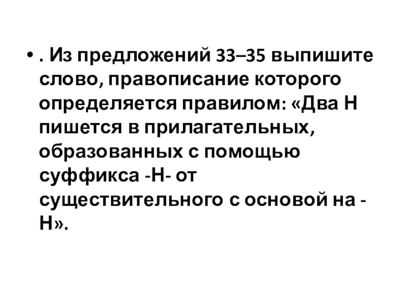 Слайд 13. Из предложений 33–35 выпишите слово, правописание которого определяется правилом: «Два
