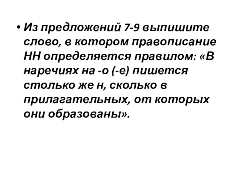 Слайд 3Из предложений 7-9 выпишите слово, в котором правописание НН определяется правилом:
