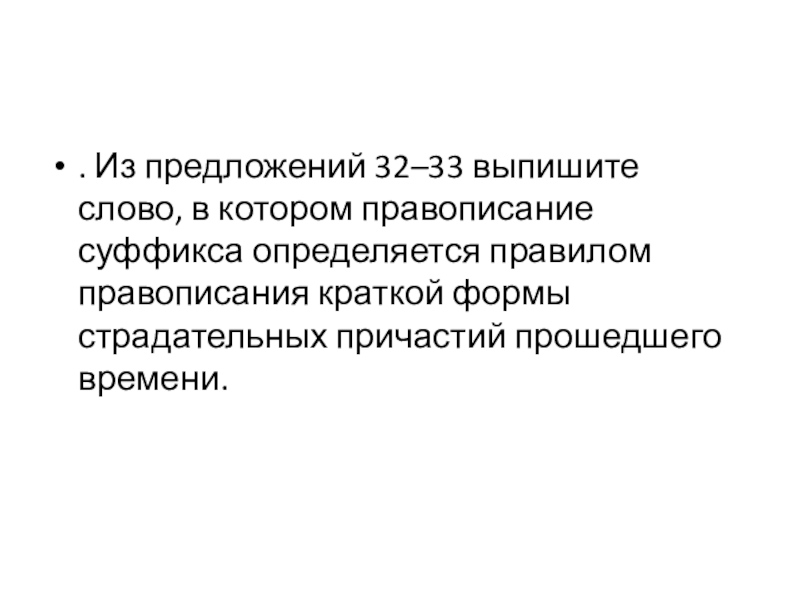 Слайд 9. Из предложений 32–33 выпишите слово, в котором правописание суффикса определяется