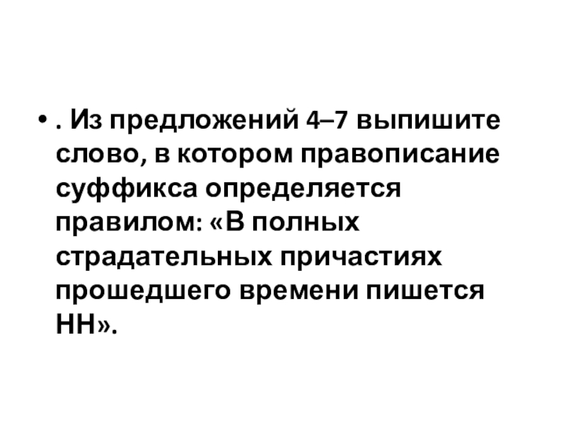 Слайд 11. Из предложений 4–7 выпишите слово, в котором правописание суффикса определяется