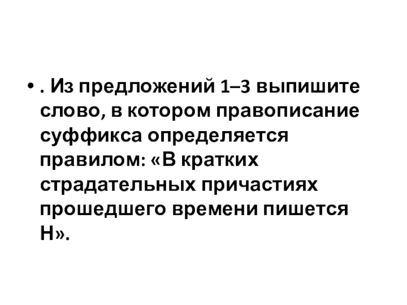 Слайд 7. Из предложений 1–3 выпишите слово, в котором правописание суффикса определяется