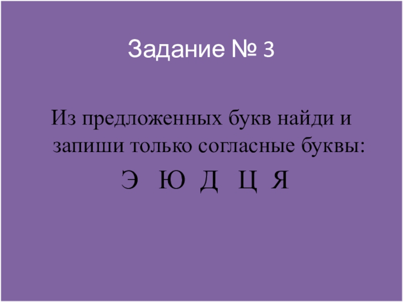 Задание № 3       Из предложенных букв найди и запиши только согласные
