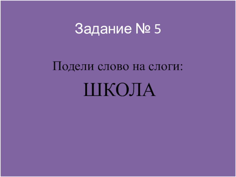 Задание № 5       Подели слово на слоги: ШКОЛА