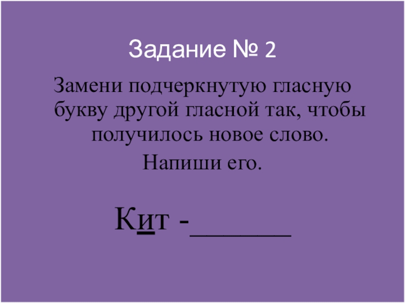 Задание № 2       Замени подчеркнутую гласную букву другой гласной так, чтобы