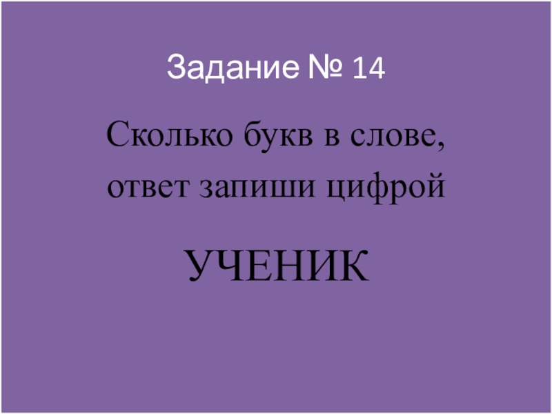 Задание № 14        Сколько букв в слове, ответ запиши цифройУЧЕНИК