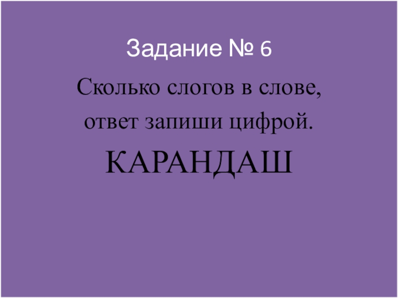 Задание № 6       Сколько слогов в слове,ответ запиши цифрой. КАРАНДАШ