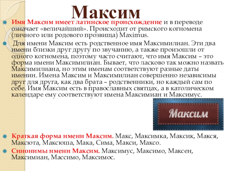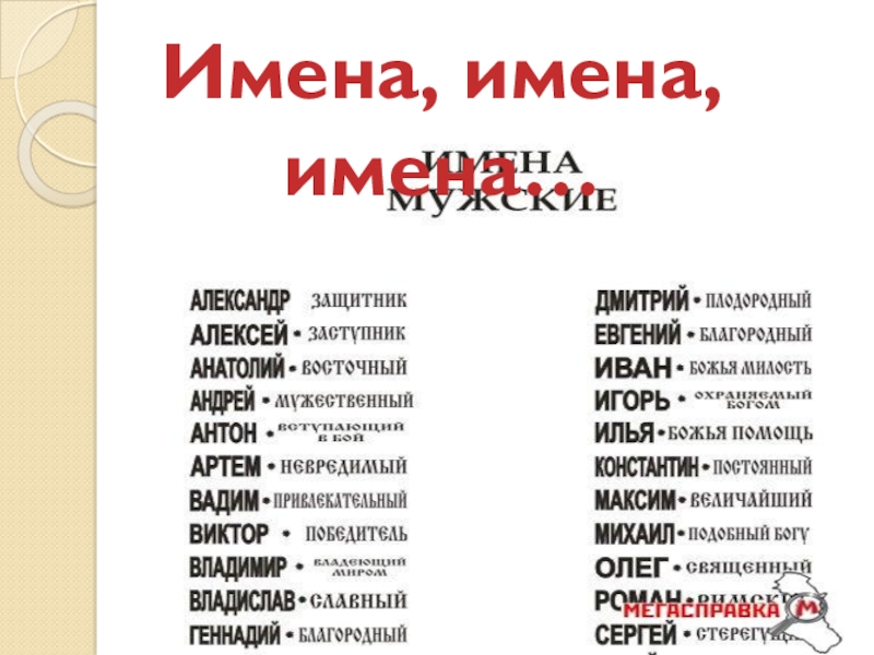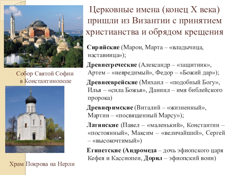 Латинские (Павел – «маленький», Константин – «постоянный», Максим – «величайший», Сергей – «высокочтимый»)