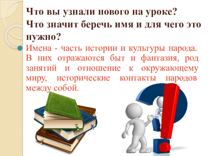 Имена - часть истории и культуры народа. В них отражаются быт и фантазия, род занятий и отношение к окружающему миру, исторические контакты народов между собой.