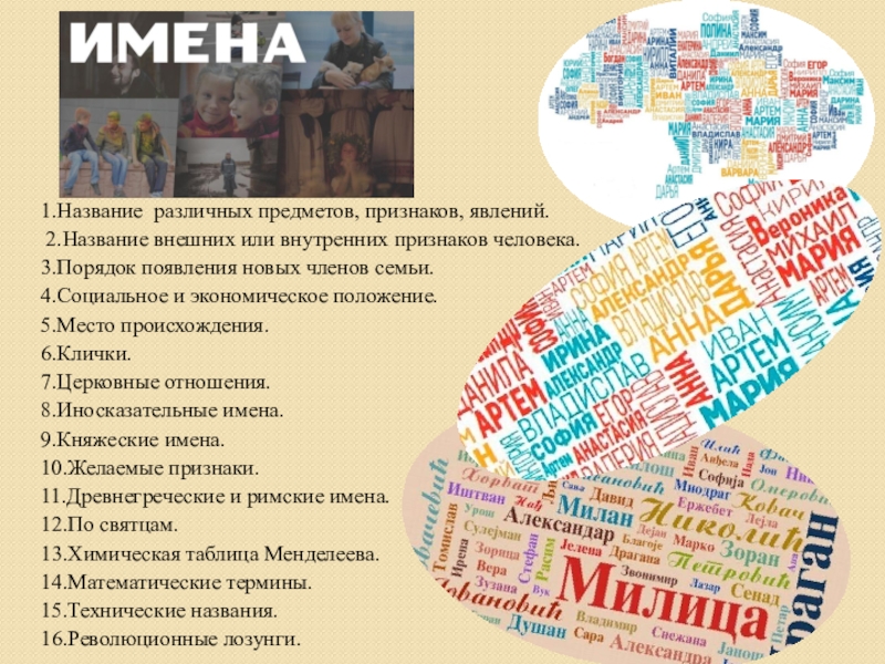 Древнееврейские (Михаил – «подобный Богу», Илья – «сила Божья», Даниил – имя библейского пророка)