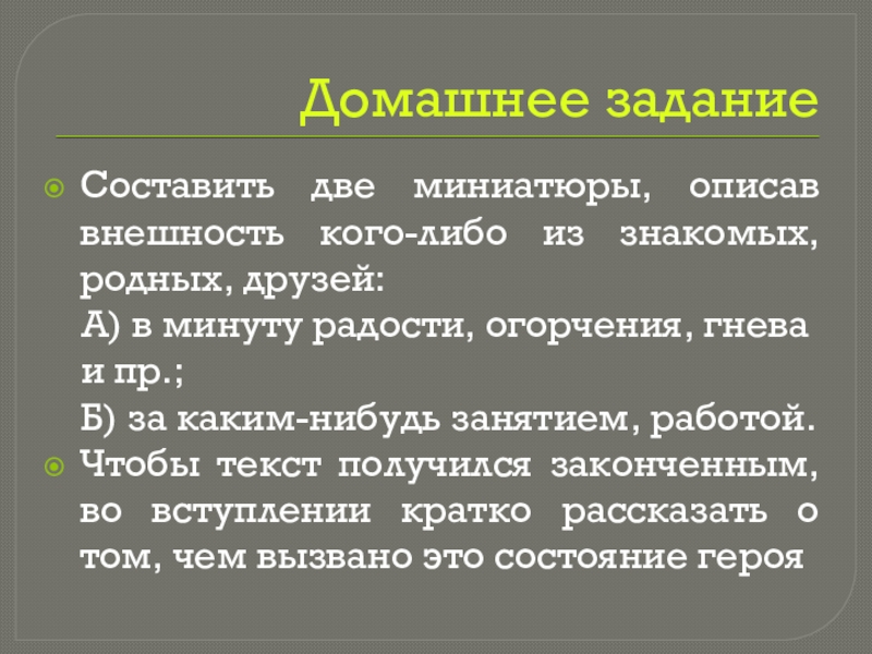 Составить две миниатюры, описав внешность кого-либо из знакомых, родных, друзей: