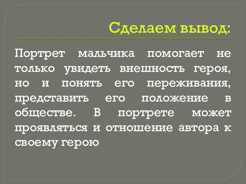 и понять его переживания, представить его положение в обществе. В портрете может проявляться и отношение автора к своему герою