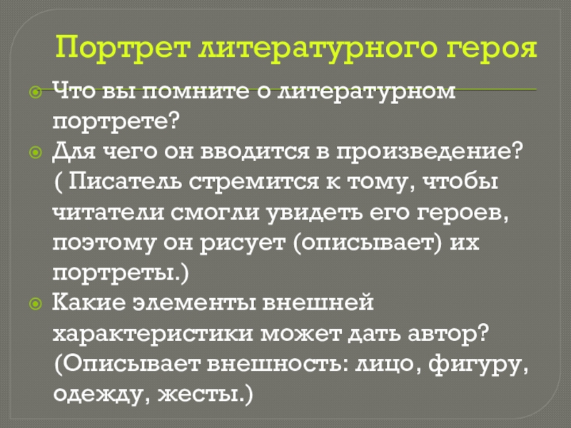 Слайд 2Портрет литературного героя