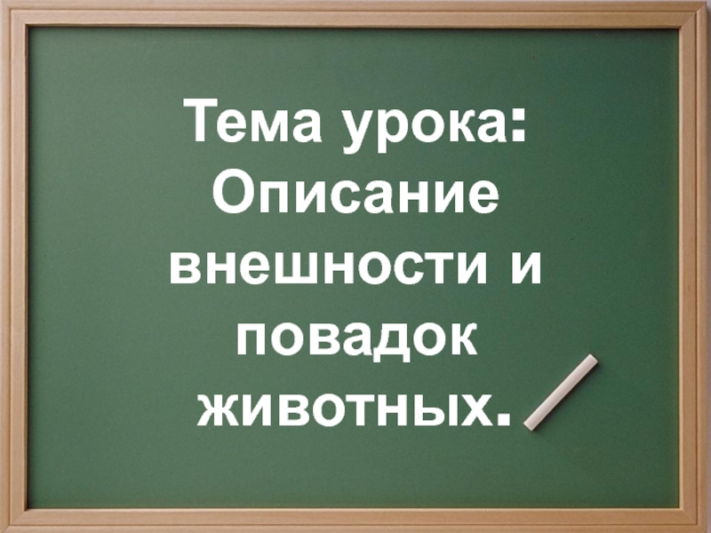 Слайд 5Тема урока: Описание внешности и повадок животных.