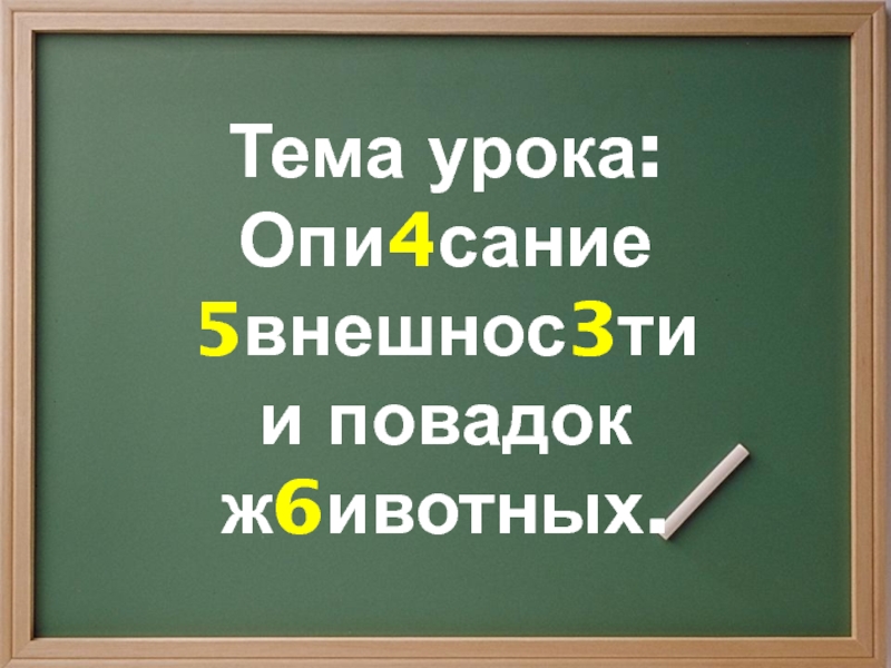 Слайд 4Тема урока: Опи4сание 5внешнос3ти и повадок ж6ивотных.