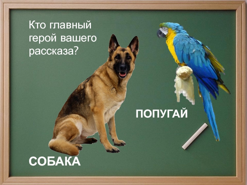 Кто главный герой вашего рассказа?СОБАКАПОПУГАЙ