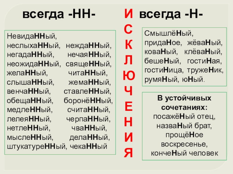 5. Правoпиcание –Н- и –НН- в суффиксах различных частей речи
