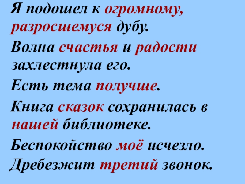 Я подошел к огромному, разросшемуся дубу. Волна счастья и радости захлестнула его. Есть тема получше. Книга сказок сохранилась в нашей библиотеке. Беспокойство моё исчезло. Дребезжит третий звонок.