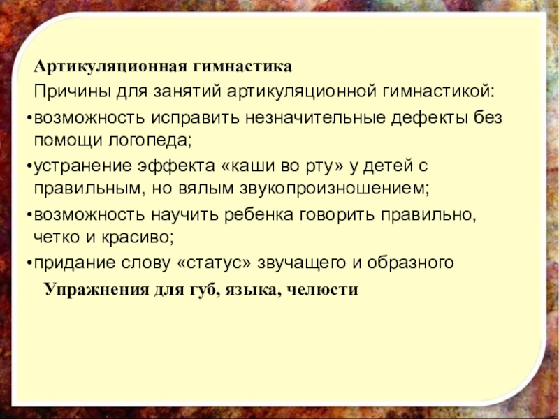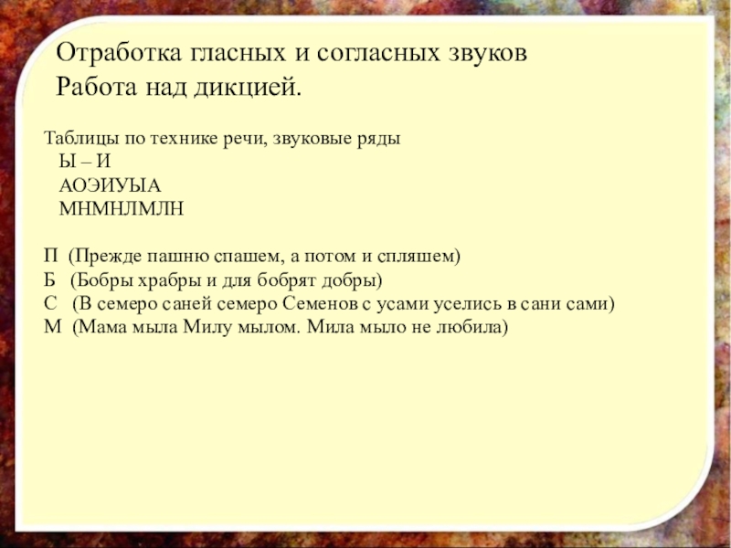 устранение эффекта «каши во рту» у детей с правильным, но вялым звукопроизношением;