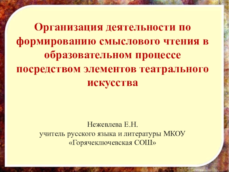 Организация деятельности по формированию смыслового чтения в образовательном процессе посредством элементов