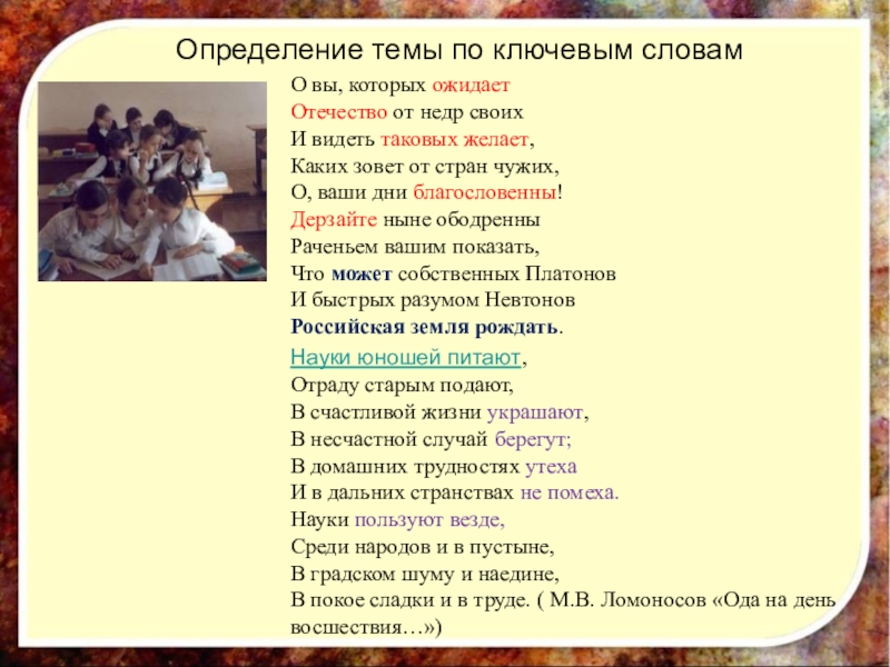 В покое сладки и в труде. ( М.В. Ломоносов «Ода на день восшествия…»)