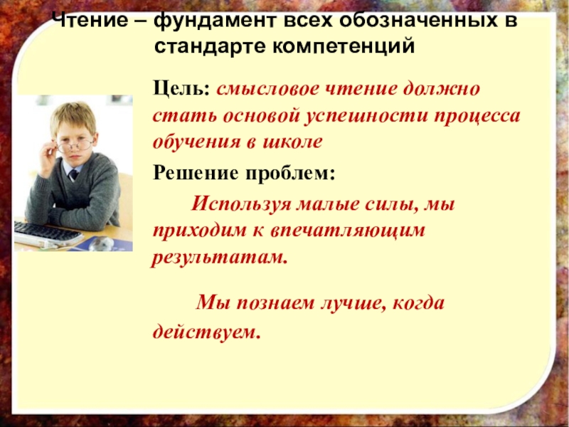 Слайд 3Чтение – фундамент всех обозначенных в стандарте компетенций