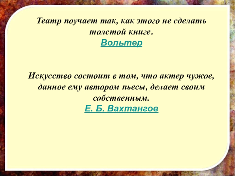 том, что актер чужое, данное ему автором пьесы, делает своим собственным.