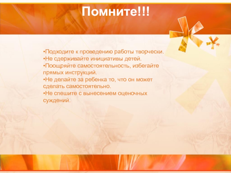 •Поощряйте самостоятельность, избегайте прямых инструкций.