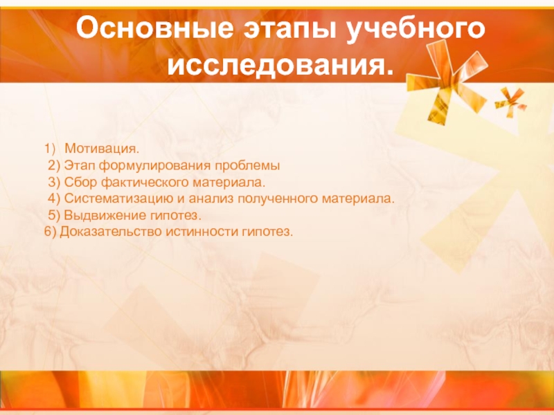 синтез, выдвижение гипотезы, статистическая обработка данных, детализация и обобщение);
