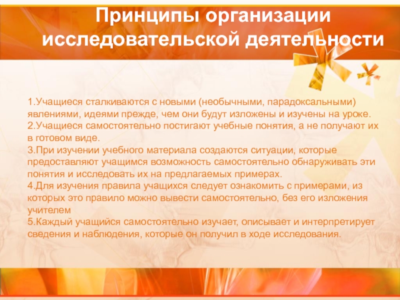 2.Учащиеся самостоятельно постигают учебные понятия, а не получают их в готовом виде.