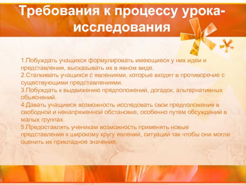4.Давать учащимся возможность исследовать свои предположения в свободной и ненапряженной обстановке, особенно путем обсуждений в малых группах.