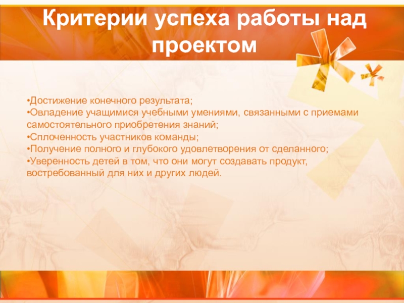 •Уверенность детей в том, что они могут создавать продукт, востребованный для них и других людей.