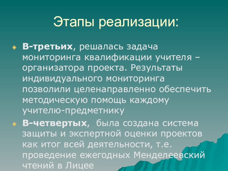 Слайд 12Этапы реализации:
