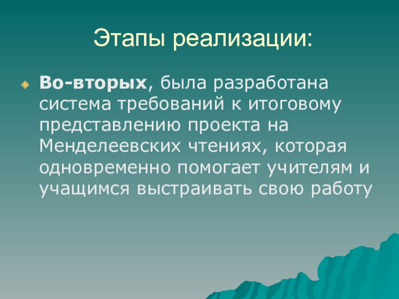 Во-вторых, была разработана система требований к итоговому представлению проекта на